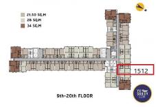 ห้องชุดเลขที่ 1512 ขนาด 25.90 ตร.ม. 1 ห้องนอน 1 ห้องน้ำ