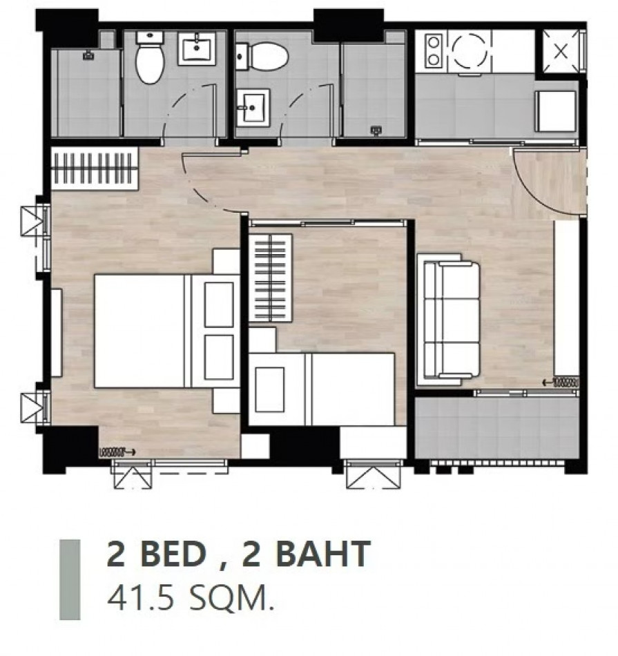 2 ห้องนอน 2 ห้องน้ำ