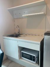 พื้นที่ห้อง 24 ตร.ม. ชั้น 14 แบบ 1 ห้องนอน 1 ห้องน้ำพร้อมเคาเตอร์ครัว มีระเบียง เฟอร์นิเจอร์ เครื่องใช้ไฟฟ้า :