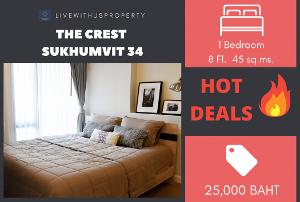 ให้เช่า คอนโด The Crest สุขุมวิท 34 45 ตรม. ใกล้ BTSทองหล่อ