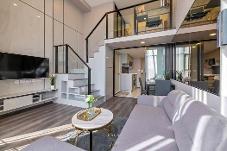 ว่างให้เช่า ห้อง Duplex เพดานสูง ตกแต่งครบ พร้อมอยู่KnightsBridge Space Rachayothin