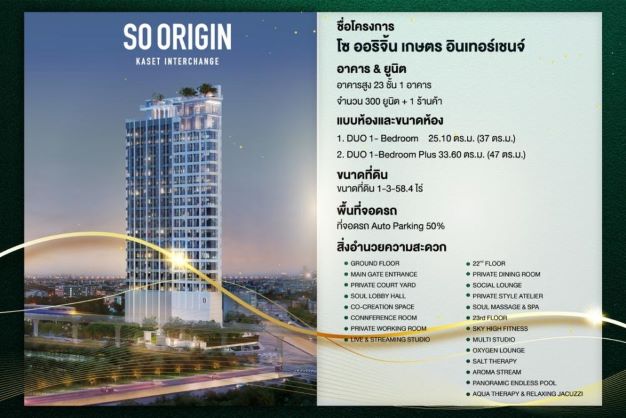 CM03949 ขายดาวน์ คอนโด โซ ออริจิ้น เกษตร อินเตอร์เชนจ์ So Origin Kaset Interchange คอนโดมิเนียม ถนนพหลโยธิน แขวงเสนานิคม เขตจตุจักร กทม. ห้อง 702 ชั้น 7 เนื้อที่ 25.10 ตรม. พื้นที่ใช้สอย 37ตรม แอร์ ​2 เครื่อง ขายดาวน์ ​147,200​ ​ +กำไร 300,000 ราคาหน้าสัญญา 4,990,000 บาท โครงการปัจจุบันกำลังก่อสร้าง *So Origin Kaset Interchange เพียง 150 เมตร จาก Bts ม.เกษตร *คอนโดอยู่ตรงข้ามทางเข้าประตู1ม.เกษตร ติดหัวมุมแยกเกษตรศาสตร์ และยังติดถนนหลโยธิน กับ ถนนประเสริฐมนูกิจ * ห้อง Duo Space 2 ชั้น เพดานสูง 4.2 เมตร ชั้น 7 * ห้องน้ำมี Smart Mirror * ระบบไฟ เเอร์ ม่านไฟฟ้า สามารถใช้ผ่านมือถือได้ * มี Auto Parking * ฟรี Furniture 19 รายการ * ค่าทำความสะอาดที่พักโดย Crown Residence จำนวน 2ครั้ง (600บาท/ครั้ง) * ค่าทำความสะอาดแอร์ 2ครั้ง ภานใน 1ปี (500บาท/เครื่อง) *สนใจติดต่อได้ที่ 086-802-5609 ป๊อบ line 0868025609* *บริการรับฝากขาย บ้าน ที่ดิน คอนโด และอสังหาริมทรัพย์ทุกประเภท ฟรี ค่าคอมมิชชั่น กรณีเจ้าของขายเองได้*