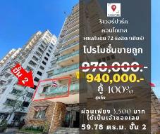ห้องใหญ่ 59.78 ตร.ม. ห้องมุม เป็นส่วนตัวสุดๆ ชั้น 2 เดินขึ้น-ลง สะดวก ราคาถูก เพียง 970,000 บาท