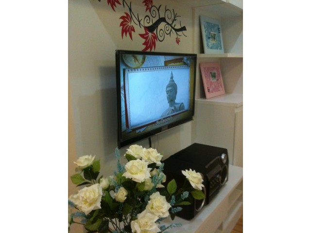 1 ห้องนอน 1 ห้องนั่งเล่น มีแอร์ 2 ตัว ที่นอนสลัมเบอร์แลนด์พร้อมชุดเครื่องนอนกันไรฝ่นอย่างดี โซฟา โต๊ะทำงาน มุมทานอาหาร เคาร์เตอร์ครัว เครื่องใช้ไฟฟ้าประกอบไปด้วย TV LED 32" Sony เครื่องเสียง AJ ตู้เย็น 2 ประตู ไมโครเวฟ เครื่องทำน้ำอุ่น