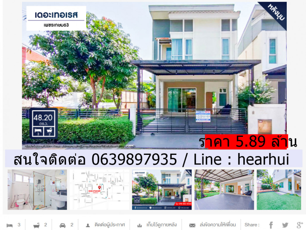 สามารถนัดชมบ้าน หรือสอบถามข้อมูลเบื้องต้น ทุกวัน ได้ที่เบอร์ 063 989 7935 (คุณฮุย )