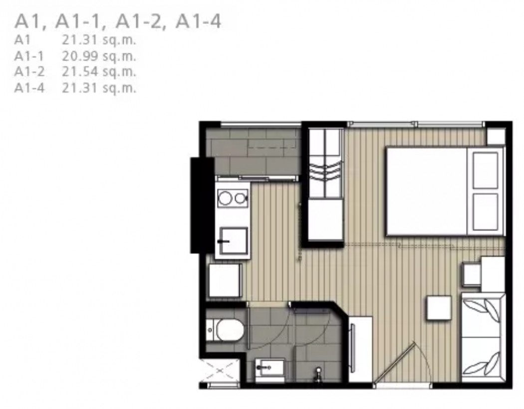 - ชนิด 1 ห้องนอน 1 ห้องน้ำ