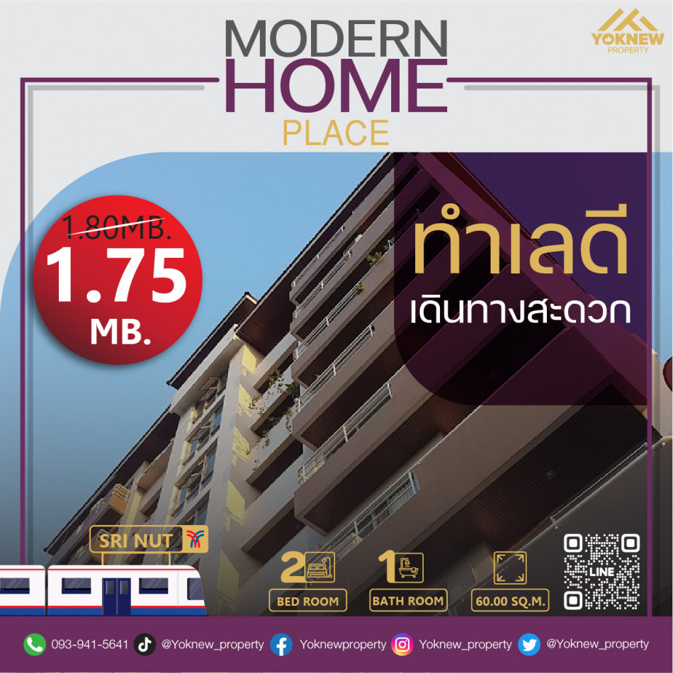 ขายห้องราคาดีเวอร์ตกแต่งสวย คอนโด modern home place อยู่ใกล้ BTS ศรีนุช