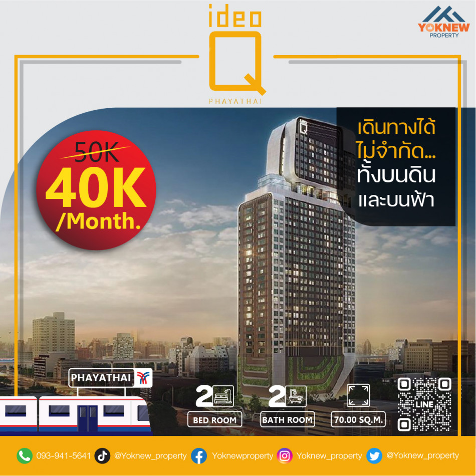 ขายด่วน คอนโด ติดรถไฟฟ้า BTS พญาไท Ideo Q พญาไท 40 ตรม ชั้น 18 ทำเลดี
