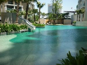 ** ส่วนกลาง ขนาดใหญ่ลอยฟ้า กว่า 4 ไร่ / สระว่ายน้ำ 2 ดีไซน์ แวดล้อมด้วยสวนร่มรื่น สนามเด็กเล่น