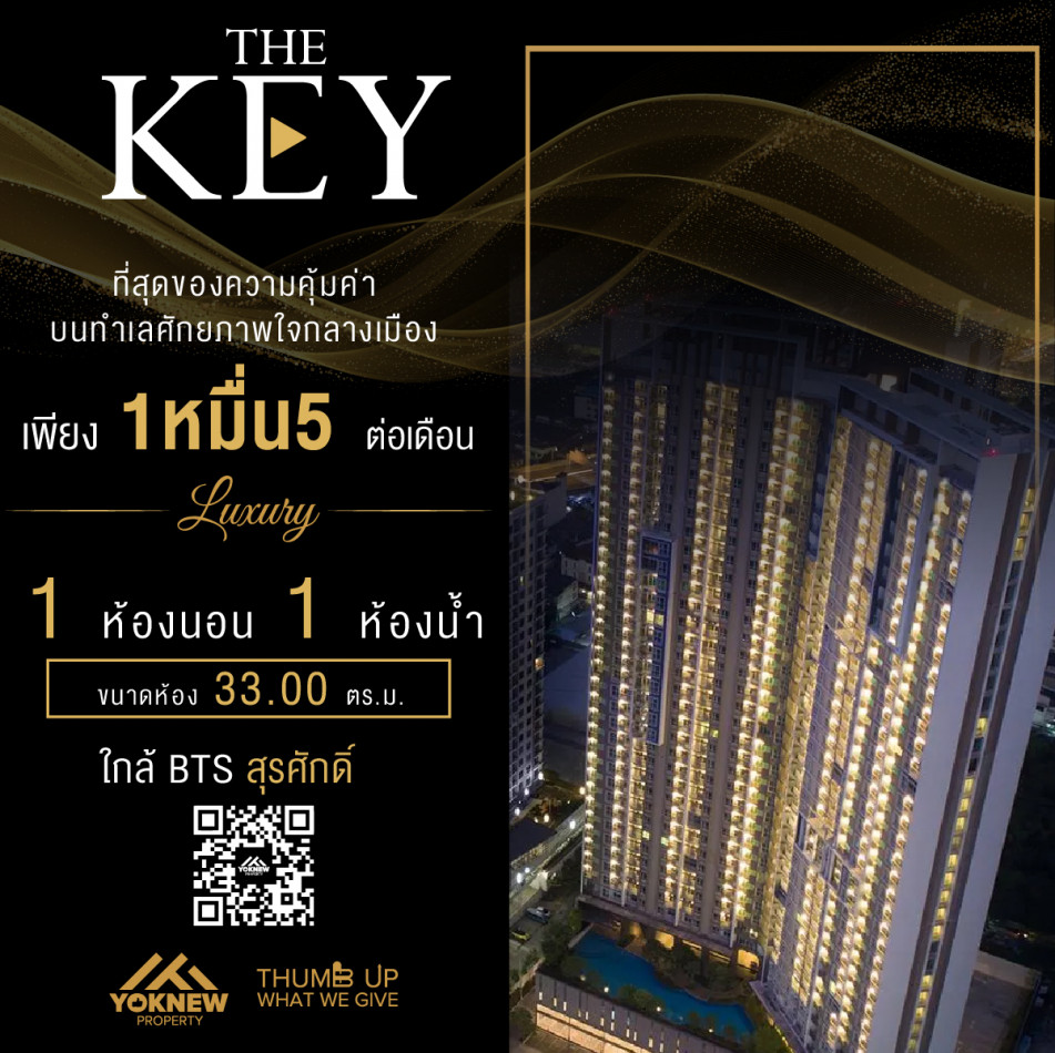 ว่างให้เช่า The Key Sathorn ห้องชั้นสูงตกแต่งสวยพร้อมเข้าอยู่ ราคาพิเศษ