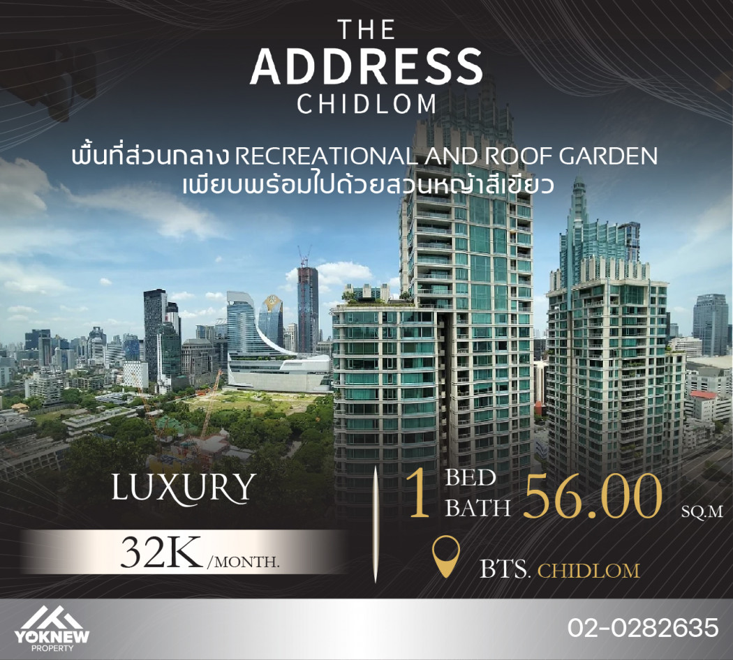 ให้เช่า คอนโด The Address ชิดลม 56 ตรม. 1 นอน 1 น้ำ ค่าเช่า 35000 ต่อเดือน