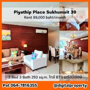 ให้เช่า คอนโด 3 ห้องนอน เฟอร์ครบ หรู พร้อมอยู่ ชั้น 4 Piyathip Place 293 ตรม. ซอย สุขุมวิท 39 ใกล้รถไฟฟ้า BTS พร้อมพงษ์