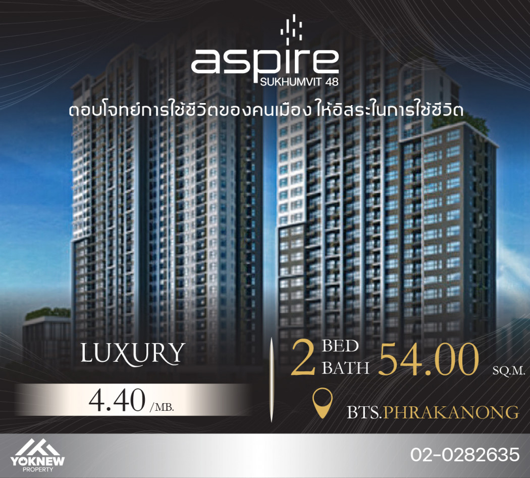ขาย คอนโด 2 นอน Aspire สุขุมวิท 48 54 ตรม. ราคานี้ ในย่านนี้ ได้ 2 ห้องนอนใจกลางเมือง คุ้มมากครับ
