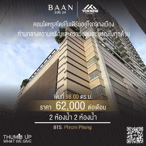 ว่างเช่า Baan Siri 24ห้องพร้อมอยู่ ชั้นสูง วิวโล่ง วิวสวย ราคาดีสุดในตึก คุ้ม!!
