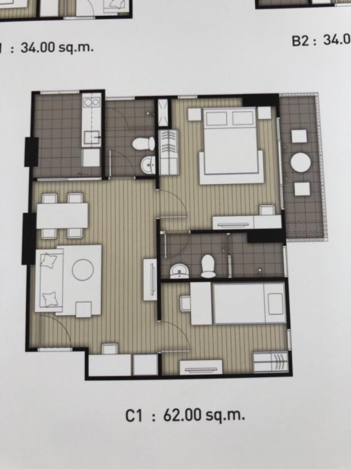 - ชนิด 2 ห้องนอน 2 ห้องน้ำ
