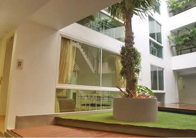ตรงกลางอาคารทำให้บริเวณทางเดินส่วนกลาง