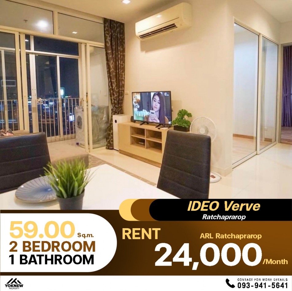 คอนโด Ideo Verve ราชปรารภ 2 ห้องนอน 1 ห้องน้ำ ห้องตกแต่งสวย ให้ครบ เช่าราคา 24,000 บาท