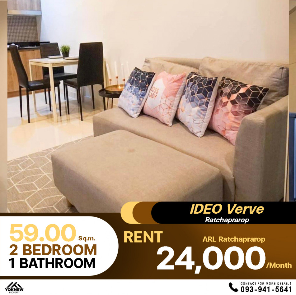คอนโด Ideo Verve ราชปรารภ 2 ห้องนอน 1 ห้องน้ำ ให้เช่าราคาถูก