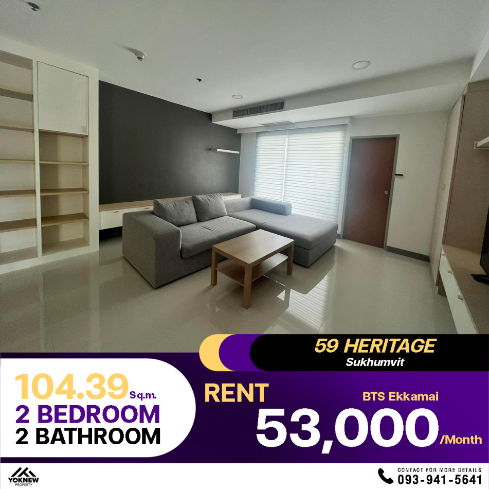 ว่างเช่าห้องใหญ่ 2 ห้องนอน 2 ห้องน้ำ คอนโด 59 Heritage Sukhumvit ทำเลดีมาก