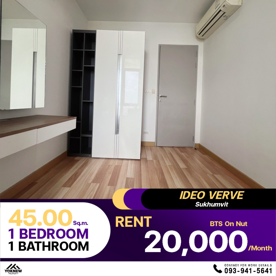 ว่างเช่าราคาดี 1 ห้องนอน 1 ห้องน้ำ ขนาด 31 ตร.ม. คอนโด Ideo Verve Sukhumvit