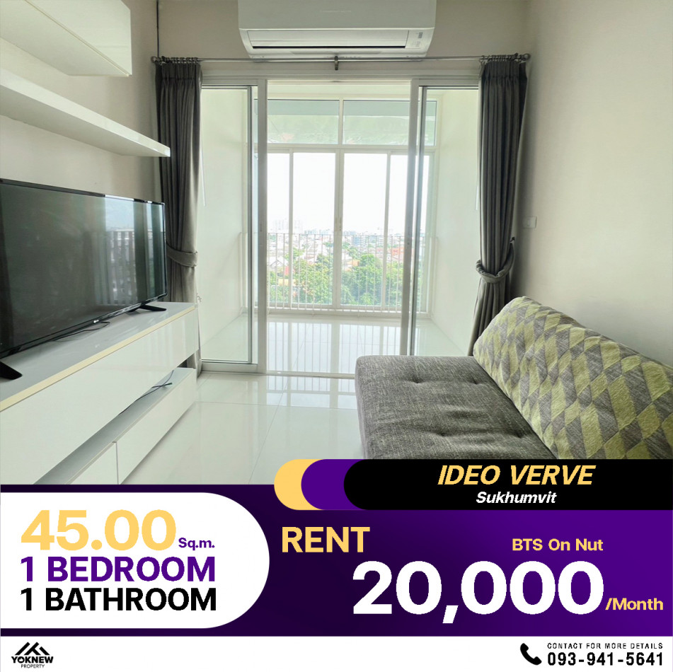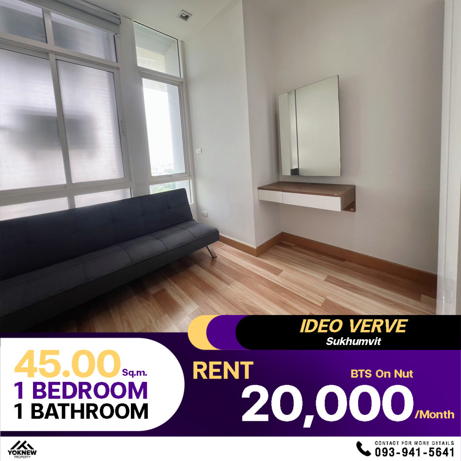 ให้เช่า คอนโด ติด BTS อ่อนนุช 0 เมตร IDEO VERVE สุขุมวิท 45 ตรม. หาของกินง่าย