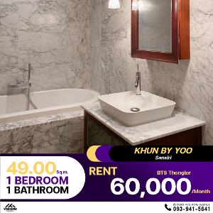 ว่างเช่าห้องสวยมากๆ ห้องขนาด 49 ตร.ม. คอนโด Khun by yoo Sansiriเช่าราคา 63,000 บาท