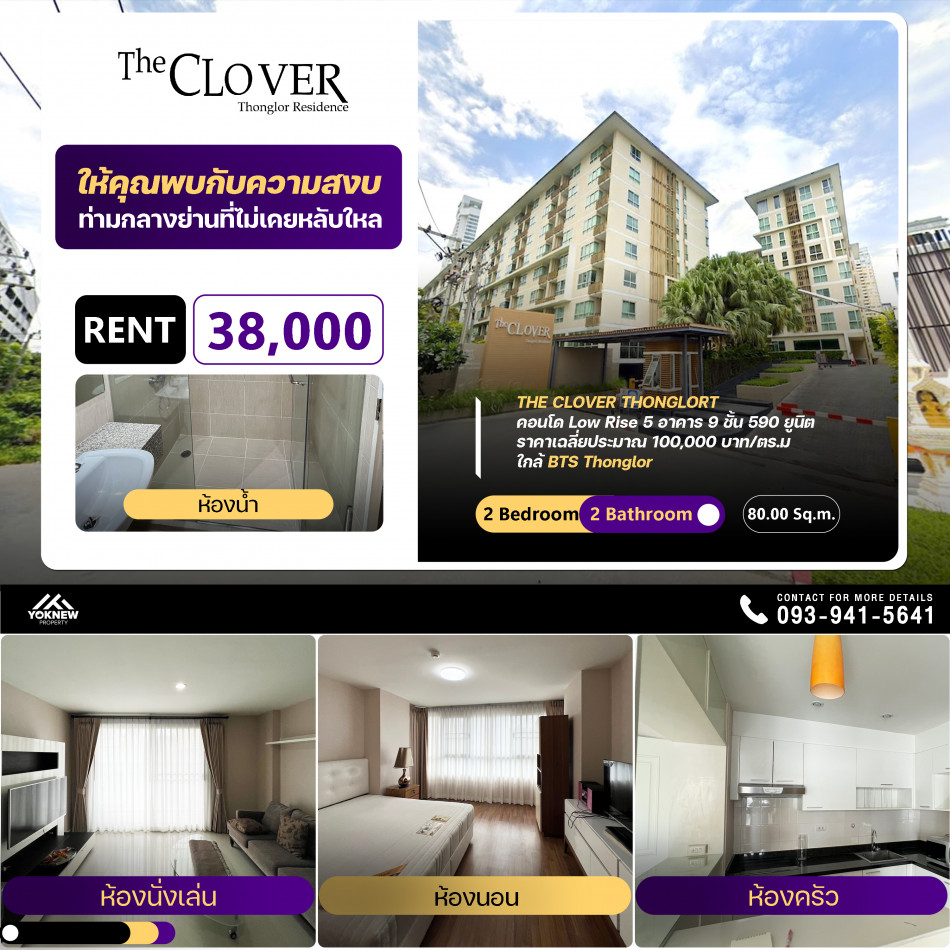 ว่างเช่าถูกที่สุดในตึก คอนโด The Clover Thonglorเช่าราคา 38,000 บาท*
