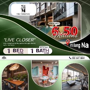 ห้องเลี้ยงสัตว์ได้1 Bedroom คอนโด Whizdom The Forestias ใกล้ BTS บางนา