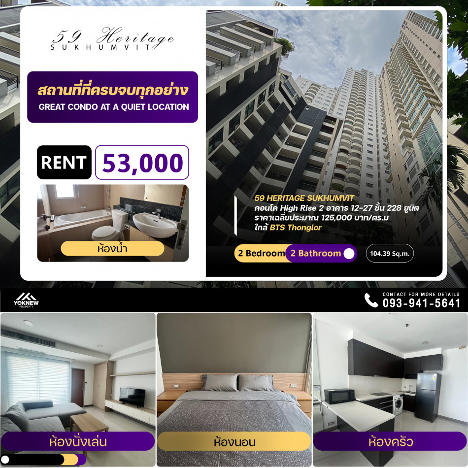 เช่าราคาพิเศษ คอนโด 59 Heritage Sukhumvitใกล้ BTS ทองหล่อ ประมาณ 300 เมตร