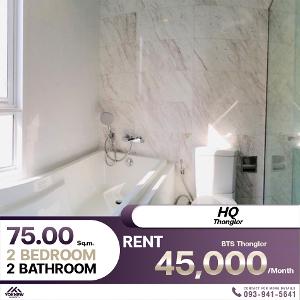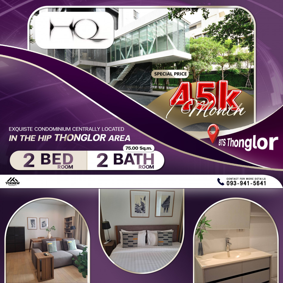 คอนโด HQ Thonglor ใกล้ BTS ทองหล่อ 2 ห้องนอน 2 ห้องน้ำ เฟอร์นิเจอร์ครบ เช่าราคา 45,000 บาท