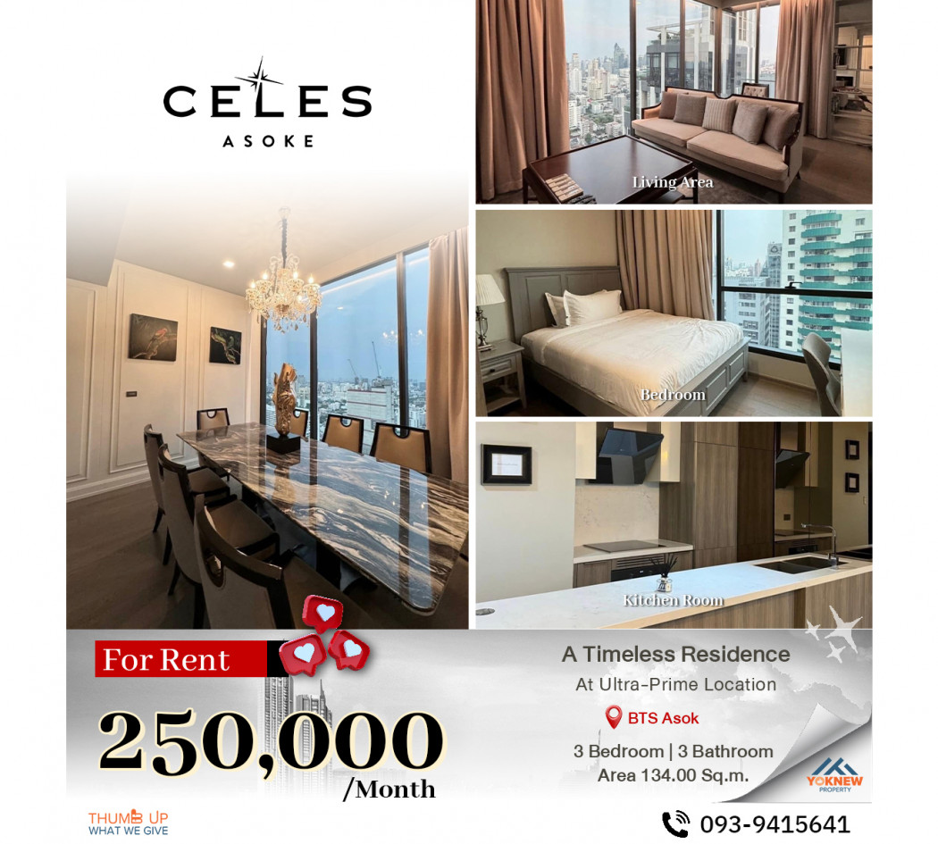 ให้เช่า คอนโด Celes อโศก ตกแต่งหรู ขนาด 135 ตรม ชั้น 38 3 นอน 3 น้ำ