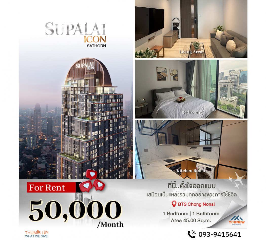 ให้เช่า Supalai Icon Sathon 45 ตรม. ชั้น 20 *Fully Furnished* ห้องใหม่ พร้อมส่วนกลางอลังการ