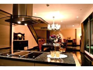 : Fully - equipped western - style kitchen connected to dining area and sky