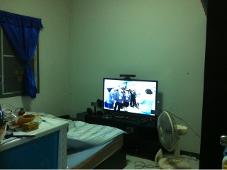 แถมพัดลมที่ห้องรับแขก พร้อมเฟอร์นิเจอร์ เตียง 5 ฟุต ตู้เสื้อผ้าใหญ่ โซฟา โต๊ะเครื่องแป้ง ชั้นวางทีวี มีจานดาวเทียม