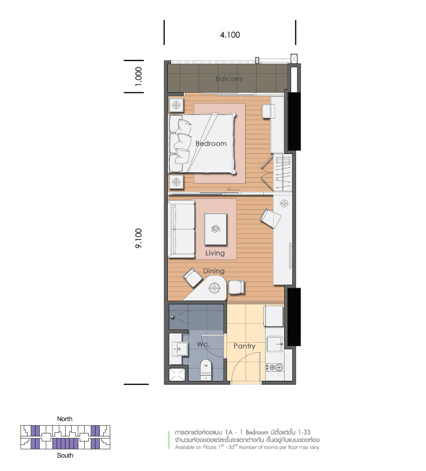 ให้เช่าคอนโด Abtracts พหลโยธิน ห้องเนื้อที่ 37.5 ตารางเมตร ชั้น8