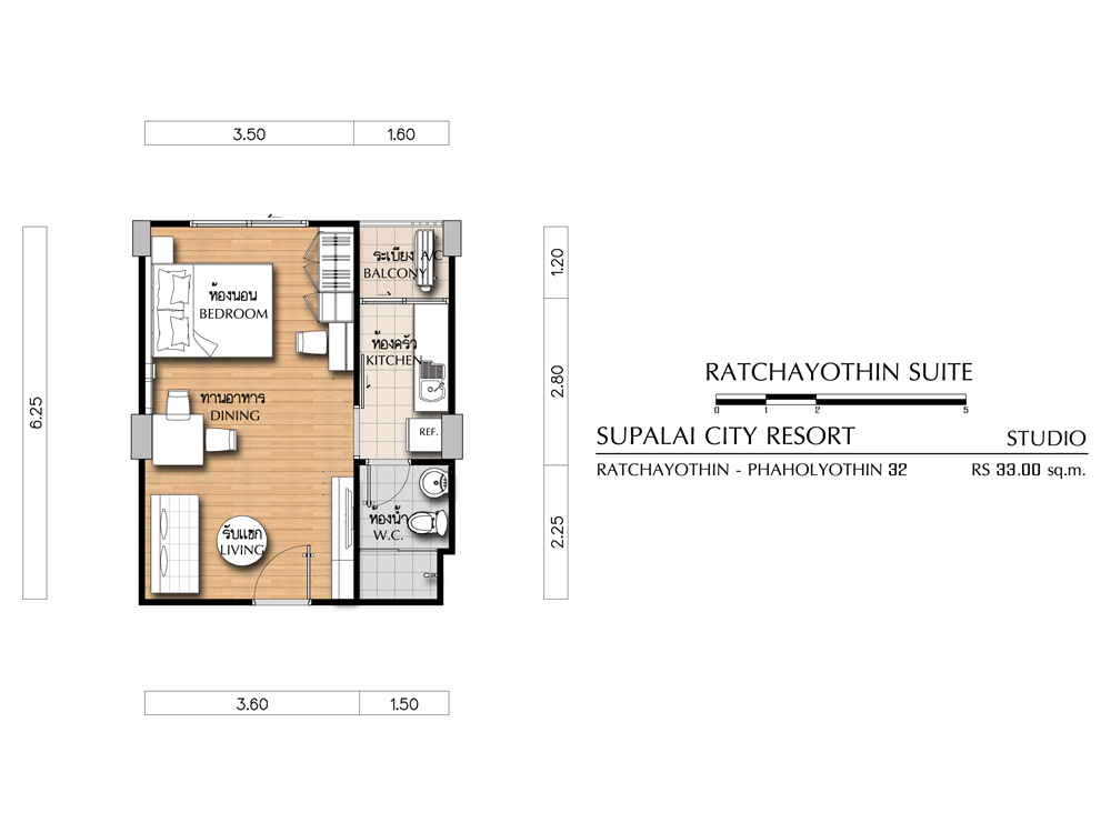 ขนาดพื้นที่ 33.0 ตารางเมตร