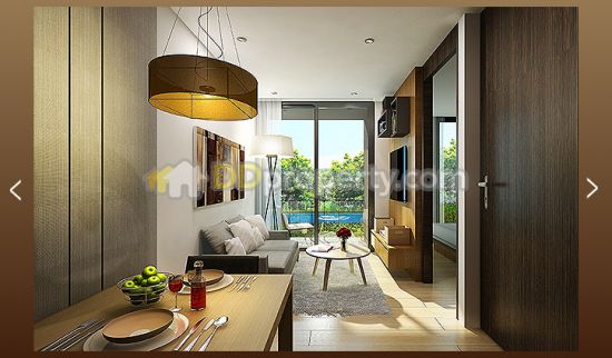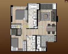 52 sqm. 2 Bedroom, 2 Bathroom, 1 Livingroom, 2 Side of balcony, Working Space, living room. Built-In Kitchen