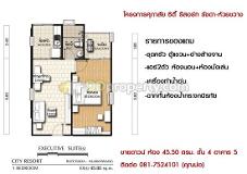 แบบ 1 ห้องนอน พื้นที่ 45.50 ตรม. ห้อง ex-0411 ชั้น 4 ตึก 5 (ตึกแรกทางเข้า-ออกโครงการ)