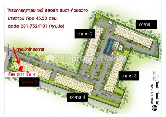 อาคารชุดพักอาศัย รัชดา-ห้วยขวาง สูง 8 ชั้น จำนวน 5 อาคาร จำนวนยูนิต 875 ยูนิต