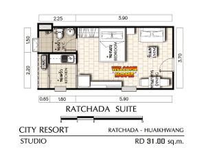 ให้เช่าคอนโด Supalai City Resort ศุภาลัย ซิตี้ รีสอร์ท รัชดา-ห้วยขวาง ห้องสตูดิโอ 32 ตรม.