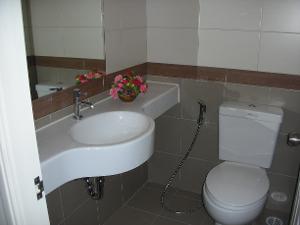 ห้องน้ำ มีเครื่องทำน้ำอุ่น ประตูบานเลื่อนกั้นส่วนอาบน้ำ