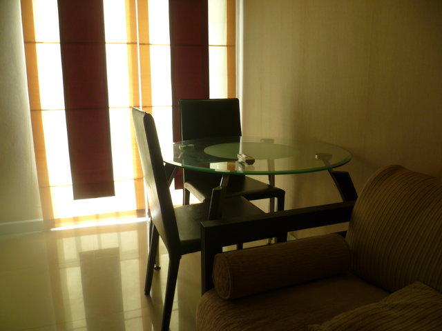 condo 42 sqm 1 bedroom 1 toilet 1 livingroom with balcony fully furnished lcd tv 32 inch heater water microwave freezer hood electric boiler and cooking protect mosquitor window seperate door dry and wet in bathroom air condition in bedroom and living room keycard and door code and mail box key 1 car parking and security outside and inside