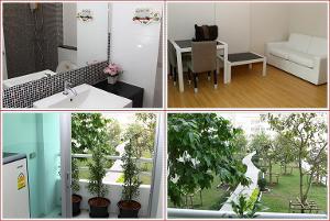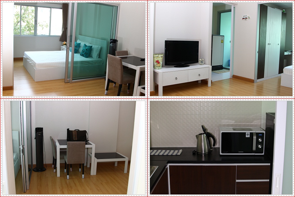 เฟอร์นิเจอร์และอุปกรณ์ไฟฟ้าครบชุด เช่น TV ตู้เย็น เครื่องทำน้ำอุ่น เตาไมโครเวฟ กาต้มน้ำร้อน พัดลมทาวน์เวอร์ สามารถหิ้วกระเป๋าเข้าอยู่ได้ทันที พร้อมวิวสวนจากหน้าต่างห้องนอนและระเบียง มีที่จอดรถของโครงการ
