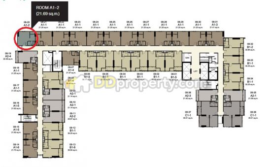 1. Studio ขนาด 21.69 ตรม. ตำแหน่งห้องดีมาก เป็นห้องมุม **ซึ่งมีเพียง 1 ห้องในแต่ละชั้น ที่เป็นสัดส่วนเงียบสงบ ไม่มีประตูห้องตรงข้าม ไม่อยู่ระหว่างทางเดิน ไม่ไกล้ลิฟท์
