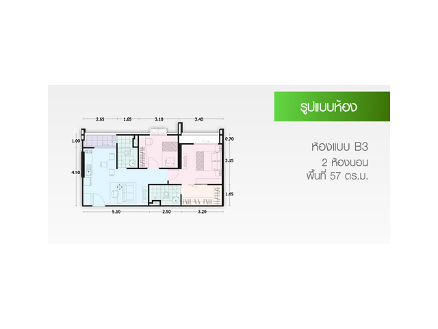 Area : 58.13 Sqm. 2 Bedrooms 2 Bathroom