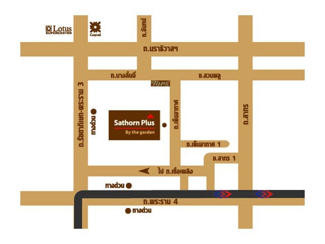 The condo is near Sathorn Road and Rama IV expressway exit, Lumphini MRT station. You can reach Sathorn or Silom Road through Narathiwat Road, Soi Suanplu or Sathorn Soi I. Rama III Road is very close. Fresh air at Lumphini Park and TOP’S supermarket, Nang Lyncee branch are just a stone’s throw.