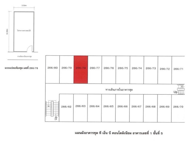รายละเอียด ห้องชุดเลขที่ 266/78 ชั้น 5 อาคาร 1 อาคารชุด TNBคอนโดมิเนียม เนื้อที่ 21.69 ตรางเมตร ทะเบียนอาคารชุดเลขที่ 10/2540 ตั้งอยู่บน ฉ.30801