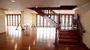 Duplex penthouse with teak wooden floor 1st floor : area 203.27 sqm. Large living room devided into 3 sections, 2 toilets, a storage space under staircase, panaramic view. 2nd floor : area 220.56 sqm. 3 bedrooms, 3 bathrooms, 2 walk-in closet, a living room, 2 study rooms